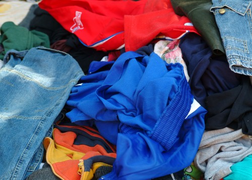 תמונה צבעונית של ערימת בגדים ישנים שצולמה ביום שמש בשוק הפשפשים ביפו. ניתן לראות את קומפוזיציית הצבעים הנוצרת מערימת צבעי הבדים. התמונה צולמה במצלמת ניקון D300 בעדשת 70 ממ.